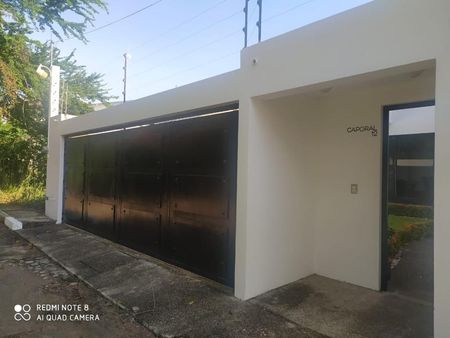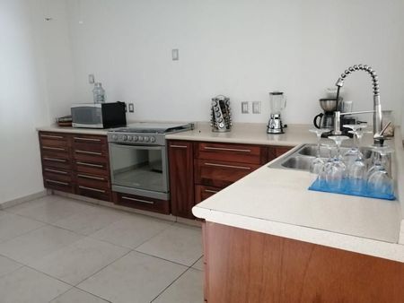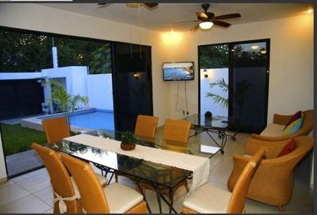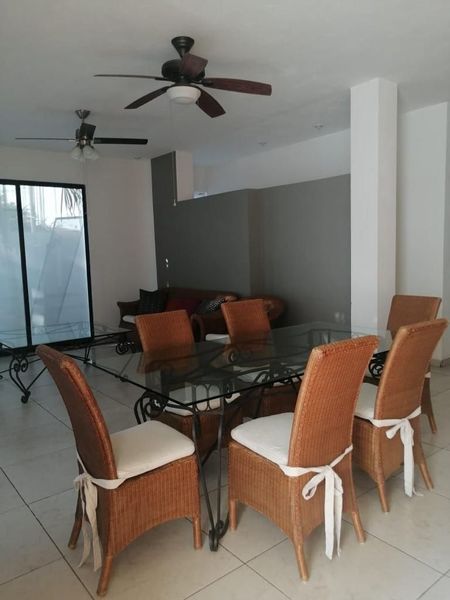 Muy bien ubicada casa en la localidad de Bucerías, Nayarit, a solo 6 cuadras de la playa, con tres recámaras, dos baños completos, cocina, comedor, sala, alberca y estacionamiento interior para un vehículo, ésta casa se renta semi amueblada con estufa, refrigerador, utensilios de cocina, sala, comedor, recamara principal con una cama king size, recamara secundaria con cama queen size y una recamara con dos individuales, incluye internet.